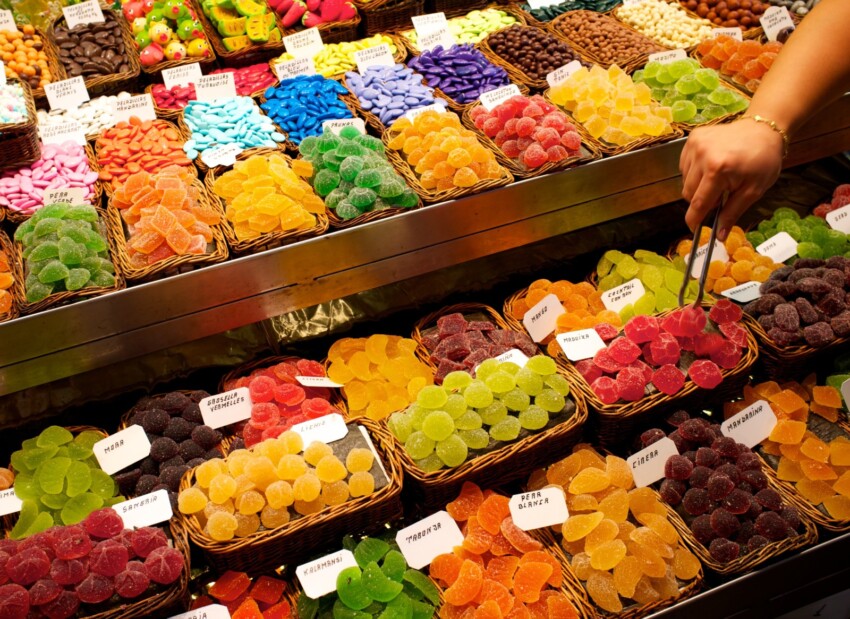 Al mercato della Boqueria è possibile acquistare carni rosse, carni bianche, selvaggina, salumi, pesce, frutta locale, frutta esotica, frutti di mare, verdure, spezie, patè, pane, dolci e pressoché ogni cosa presente nell’universo della gastronomia. C’è davvero di tutto, compresi stand specializzati in olive, noccioline, specialità in scatola e decorazioni per dolci.